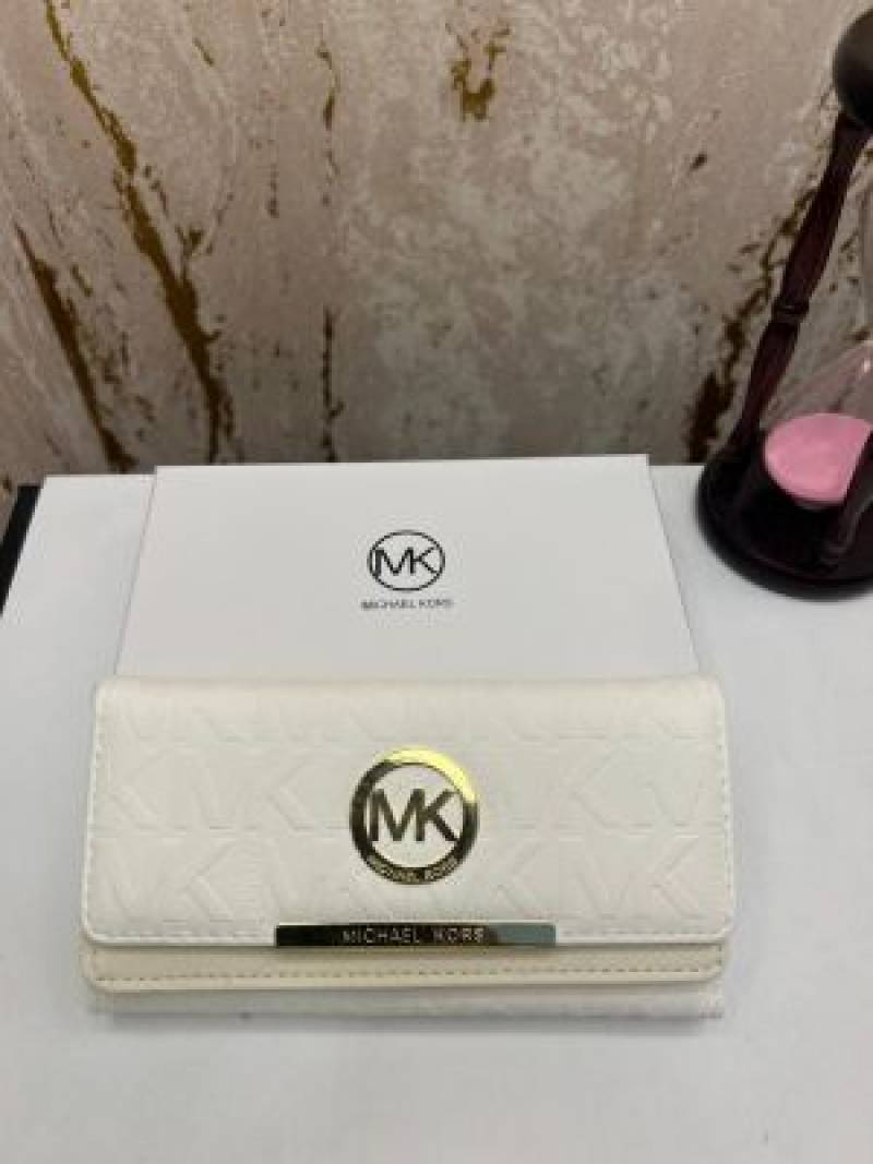 • MICHAEL_KORS PREMIUM WALLET LOGO TRI FOLD WALLET (MK-8018 WHITE)